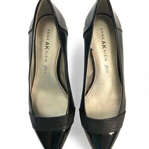 Ann AK Klein iFlex Black Patent Leather Flat Women's Shoes 2' Heel Size 7