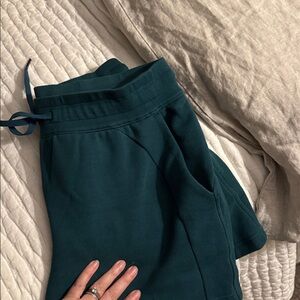 Like new! Matching sweatshirt in my closet. Storm teal in the color. Five inch inseam, soft and perfectly oversized length. All around neutral shorts in soft scuba iconic sweats.