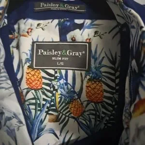 Paisley & Gray Blue 3-Piece Suit with Tropical Print Lining, Slacks and Vest