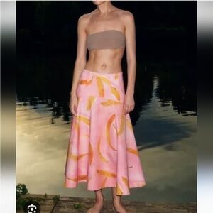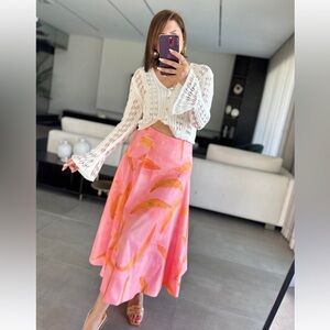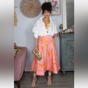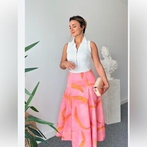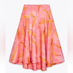 Mid-rise midi skirt. Contrasting print detail. Asymmetric hem with an A-line finish. Concealed zip fastening in the seam.