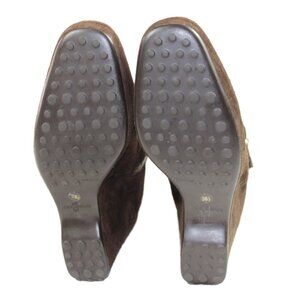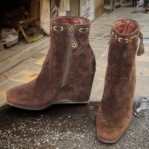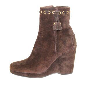 Original Car Shoe Prada Chocolate Suede Gold Tone Eyelet Wedge, Size 36.5
