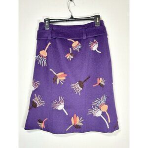 ETCETERA Wool and Cashmere Blend Embroidered Purple Skirt Cottagecore Size 4