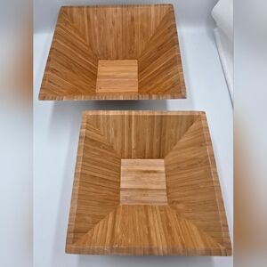 Vtg 90s Pampered Chef Bamboo Wood Retro 3x9, 4x11 Tapered Square Bowls