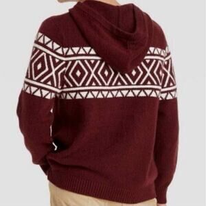 Goodfellow Knit Hooded Sweater Men's Size XL Burgundy/White Pullover Soft Preppy