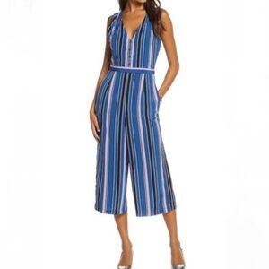 1901 Jumpsuit Romper Size XS Blue Pink Striped Casual Church Workwear Party Fall