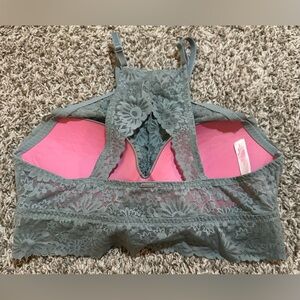 PINK Victoria’s Secret High Neck Push Up Floral Lace Bralette Sage Green Size S