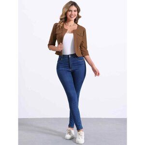 Women's Jean Jacket Slim Fit Casual Denim Jacket 3/4 Sleeves Outwear Brown