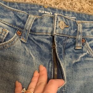 Old Navy O.G. high rise medium blue distressed straight leg jeans