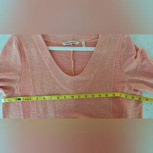 Cozy and so soft coral sweatshirt with a relaxed fit. Features a V-neck and front pockets. Ideal for casual wear. Like new condition. Tag is lined through so cannot be returned to store. Measurements in photo are approximate.