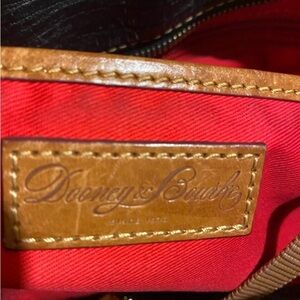 Dooney & Bourke This stylish tote bag features a sophisticated black and brown leather design, perfect for any occasion. Its elegant look makes it a versatile accessory for your wardrobe.main compartment 4 pockets at interior wall 1 zip closure fabric lining zip pocket at back logo at front lining have some stains bottom corners strap have tear cracks exterior creasing stains hight 10.5” wide 16” depth 5” strap drop 11”The dimensions are based on approximately measurements before placing an order please check take a moment to view all photos using feature for a closer look