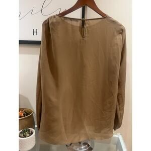 Sheer tan blouse with gold buttons on wrist and neck and pleated shoulder detail. By Zara, size XL