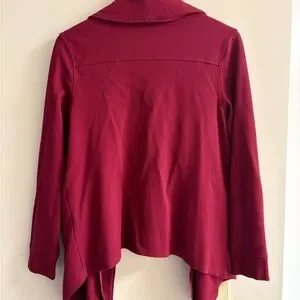 Stylish and versatile blazer. Features a rich burgundy hue. Perfect for layering.