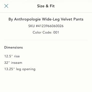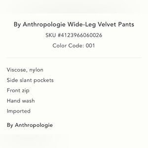 NWT new small Anthropologie wide leg velvet pants black