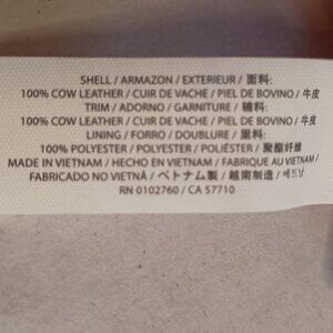 Material: Shell and Trim: 100% Cow Leather; Lining: 100% Polyester