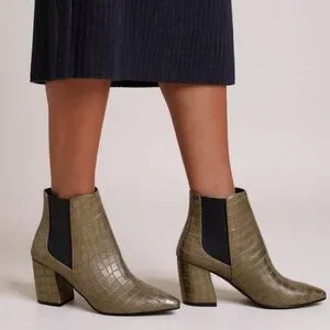The Valentina Croc Embossed Block Heel Ankle Boots