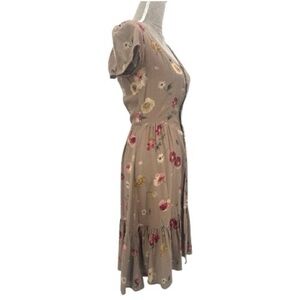 Christy Dawn Autumn Floral Print Button Front Midi Dress Beige Taupe Size Small
