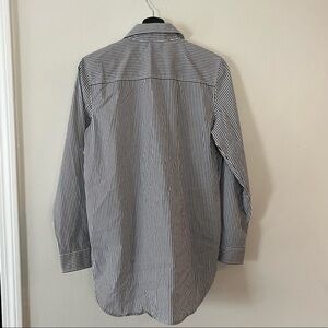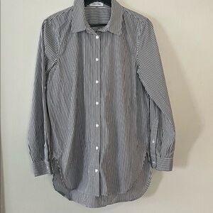 A crisp striped shirt is a wardrobe necessity - this collared version features a contemporary slim boyfriend fit with button closures at the placket and roll up button cuffed long sleeves.