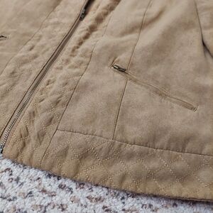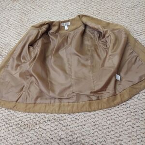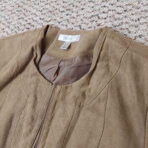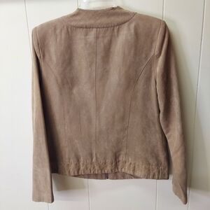 Dressbarn Faux Suede Jacket Womens Sz M Brown Tan Full Zip Blazer Lined Neutral