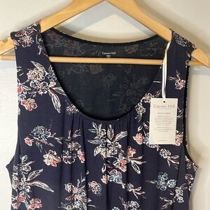 Garnet Hill NWT Navy Blue Floral Jersey Knit Sheath Dress with Pockets Sz L