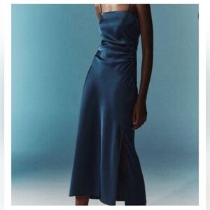 House of Harlow // NWT Elegant Navy Blue Satin Ruched Dress