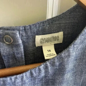 Size 14 Gymboree chambray blue denim like dress. Girly and fun! The chambray has a slight shimmer. Love the tiers and ruffles. A dress that spins. 3/4 sleeves