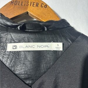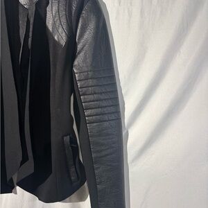 Sleek black leather jacket with a stylish waterfall front. Perfect blend of modern design and comfort.