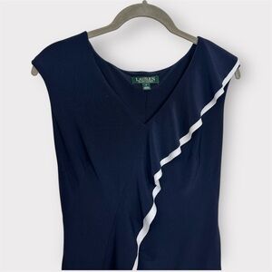 ✨ Pre-owned in excellent condition! Lauren Ralph Lauren Navy Blue White Ruffle Classic Preppy Mini Dress