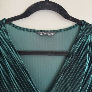 This chic green wrap dress by Simplee Apparel features a flattering V-neckline and flutter sleeves, perfect for a cocktail night out. The midi length and stylish slit add a touch of elegance to its vibrant design.