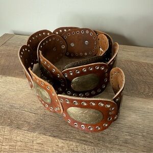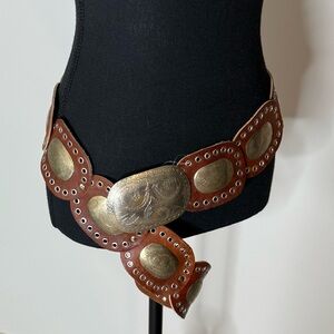 FREE PEOPLE New Supernova Cognac Brown Leather Conch Hip Belt Discs Boho M/L