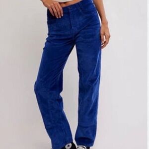 Free People We The Free classic corduroy pants in a vibrant blue hue.