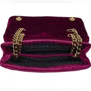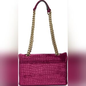 NWT. Kurt Geiger London Velvet Brixton bag. This stylish burgundy shoulder bag features a luxurious croc-embossed design. The gold chain strap adds a touch of elegance, making it perfect for any occasion.