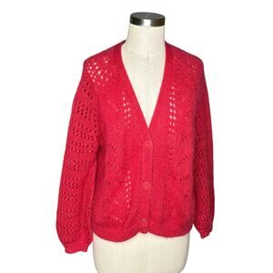 SEZANE Dereck V-Neck Mohair Button Down Cardigan Sweater Magenta Bold Size Small
