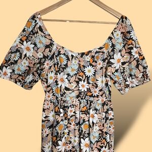 a.n.a. Smocked Floral Print Dress Size Large Cottagecore Pockets Puff Sleeves