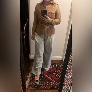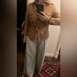 Vintage Y2K Zara Tan Leather Jacket Tailored Fit Hip Length