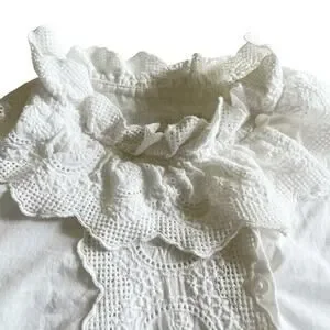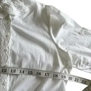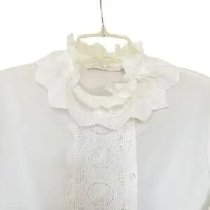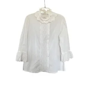 Anne Fontaine White 3/4 Bell Sleeve Embroidered Lace Ruffle Collar Blouse Sz 10