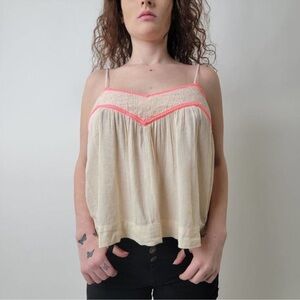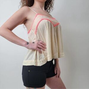 Cream Camisole with Pink Ruched Neckline and Spaghetti Straps