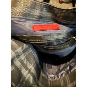 Tommy Hilfiger Plaid Hobo Handbag Shoulder Bag Black Grey Silver Tone Buckle