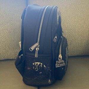 This licensed Dementor Attack Harry Potter Loungefly Mini Backpack features include shiny silver-coloured metal hardware, adjustable straps, side pockets, vegan leather (polyurethane), and glow n the dark details. Note the coordinating lining.