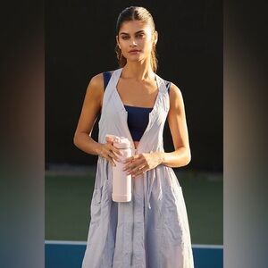 The Free Fall Dress is a utility-inspired piece from Daily Practice by Anthropologie. It features the Everest fabric, adjustable drawstrings at the waist and hem, and oversize patch pockets.
