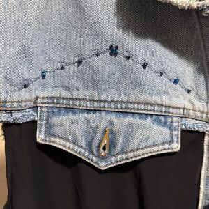 Sleeveless denim & black chiffon long sequin jacket duster high low custom flowy