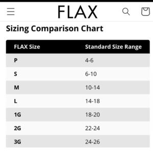 Flax sizing chart in photos medium is US size 10 to 14