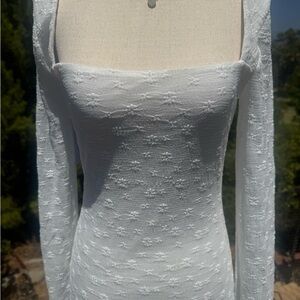 NWOT Princess Polly Lanchester Textured Whitr Long Sleeve Dress