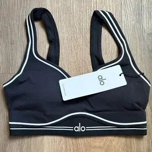 SOLD SOLD !!!Alo Yoga Airbrush Heart Throb Bra Black/White Sz XS NWT