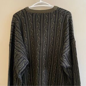 Vintage Black & Olive Green Patterned V-Neck Sweater – Size XL EUC – 30% Wool
