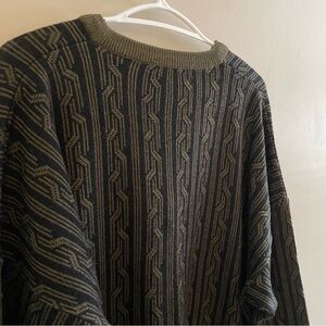 Vintage black & olive green patterned sweater with a classic V-neckline. Cozy and soft, made from 70% acrylic / 30% wool, perfect for layering or adding a vintage touch to fall and winter outfits. Size XL, Excellent Used Condition (EUC).