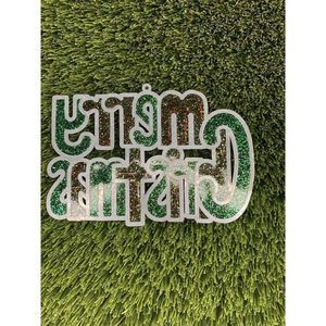 Vintage Merry Christmas Stained Glass Like Suncatcher Ornament Hang Holiday 5".