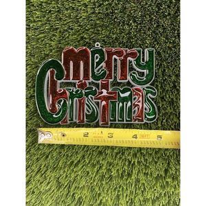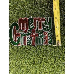 Vintage Merry Christmas Stained Glass Like Suncatcher Ornament Hang Holiday 5"