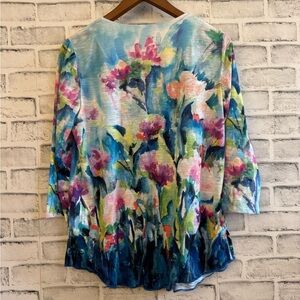 Women’s Alfred Dunner multicolored watercolor floral print 3/4 sleeve top Small