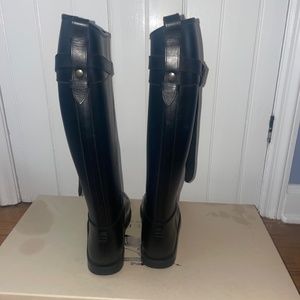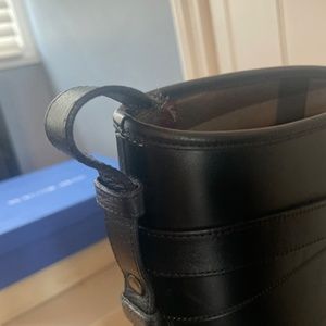 Sleek black boots with buckle detail. Perfect for winter and rain. Durable and stylish.