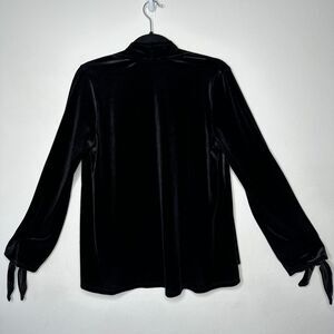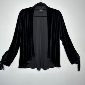 Jet Black Velvet Velour Waterfall Open Front Cardigan Long Sleeve with Ties M